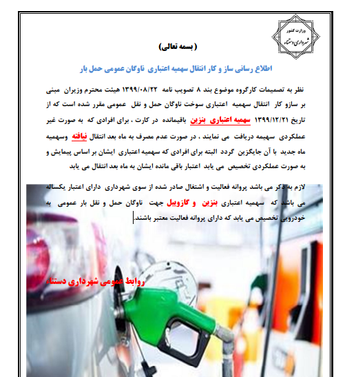 اطلاع رسانی سازو کار انتقال وذخیر سهمیه اعتباری ناوگان حمل و نقل بار و مسافر (بنزین و گازوییل)Admin20 آذر 1401